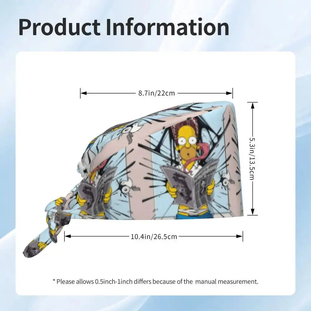Infunde diversión y frescura en tu rutina de cuidado: este gorro quirúrgico personalizado con estampados de dibujos animados de Los Simpson, tejido respirable en poliéster suave, es unisex y adaptable a cuatro estaciones para médicos, enfermeras o profesionales adultos.