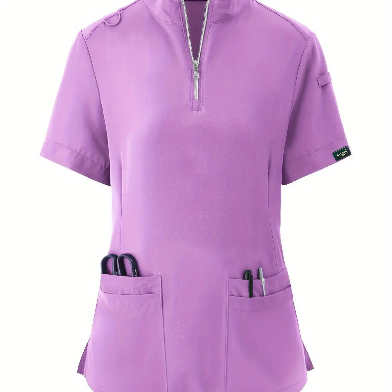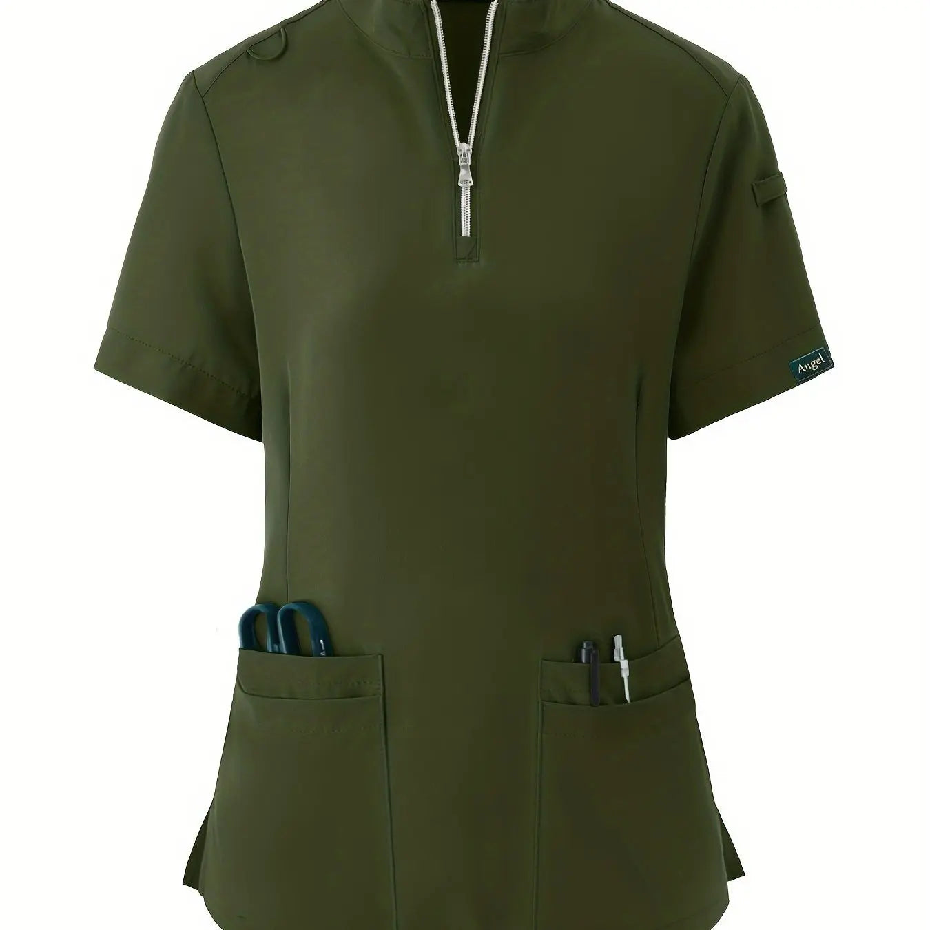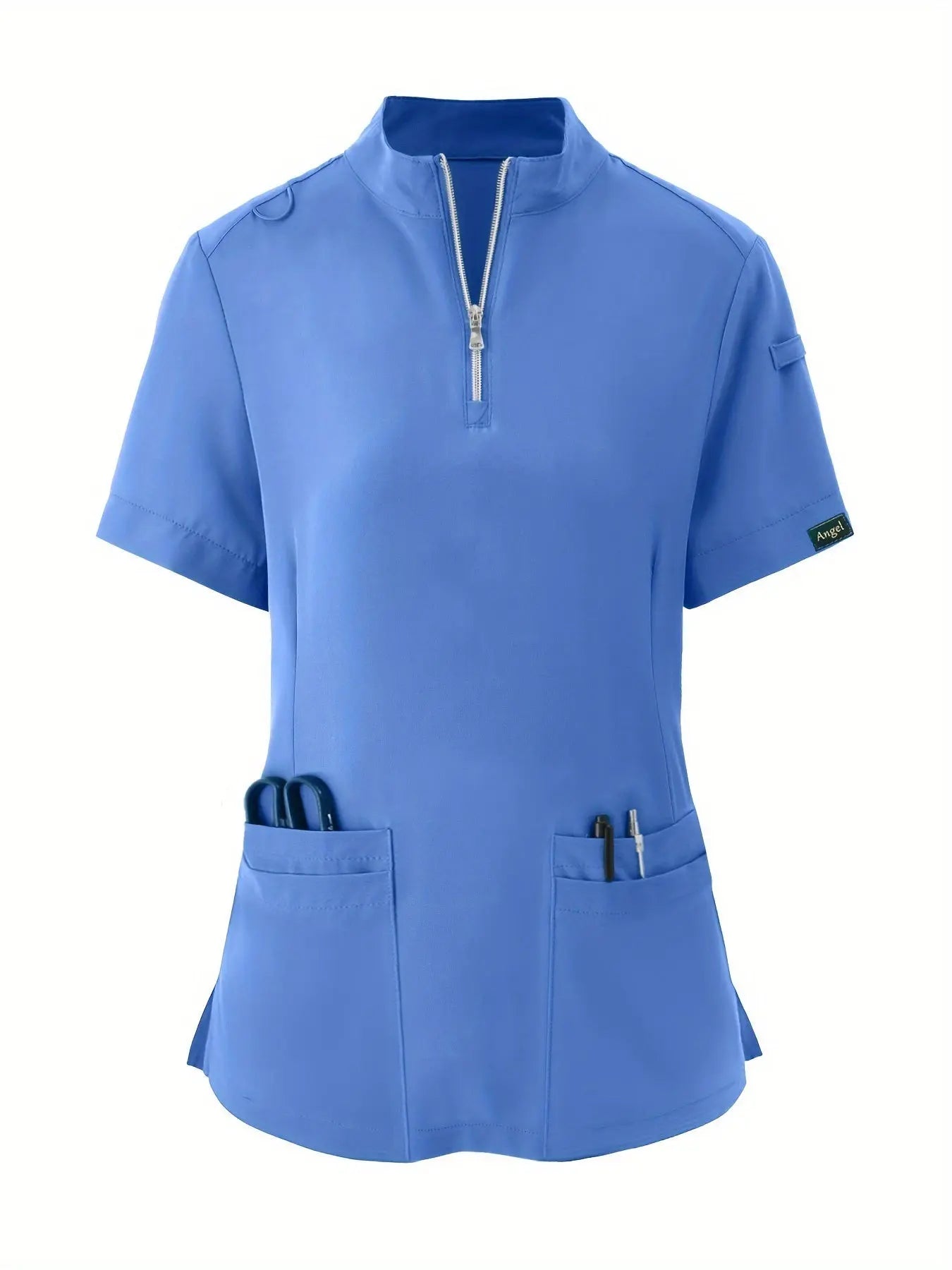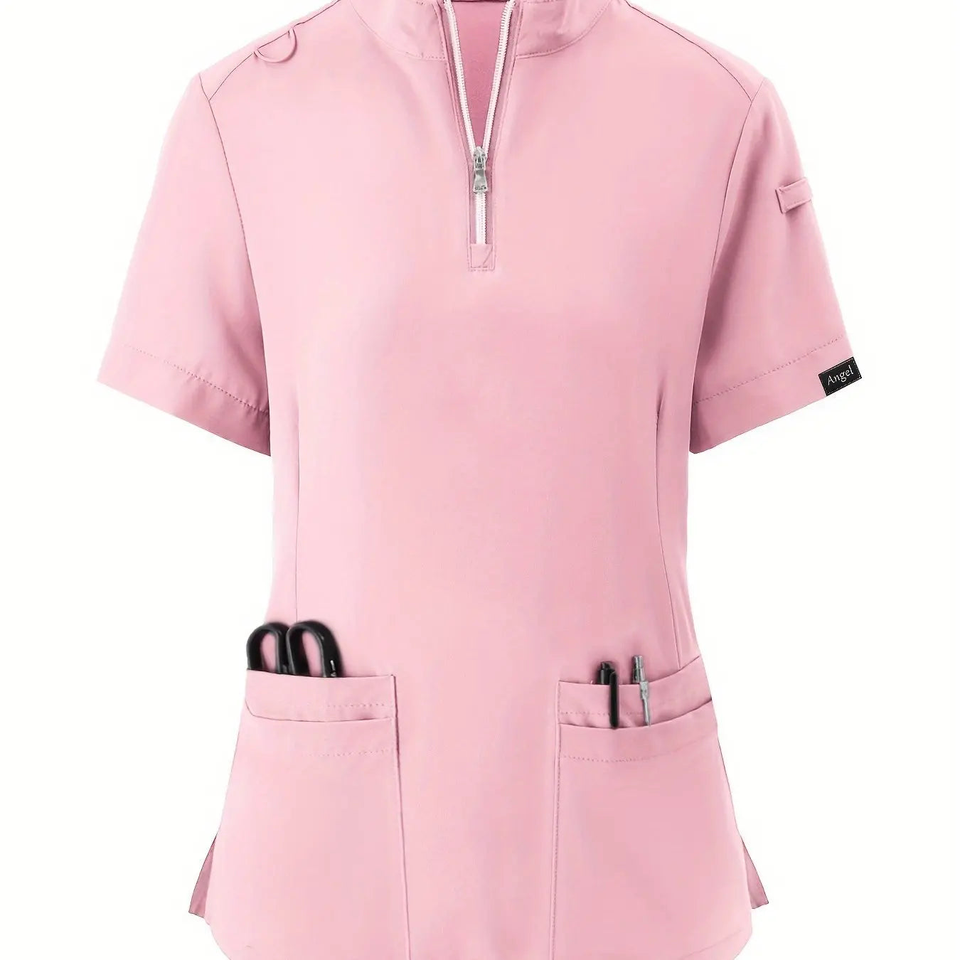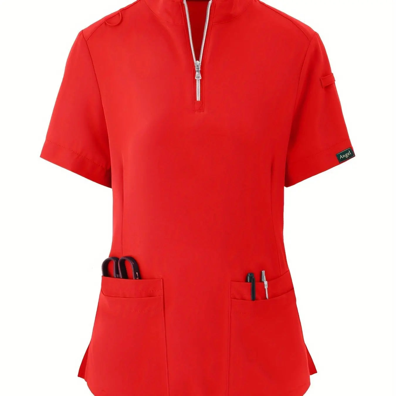 Filipina Uniforme de Enfermera para Mujer: Ajuste Relajado con Cremallera Frontal, Manga Corta Transpirable en Poliéster Elástico, Cómodo para Profesionales Médicos